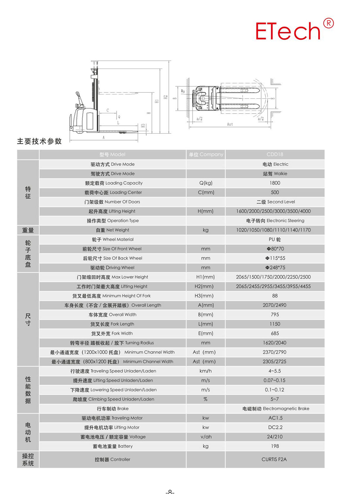 站 驾 电动 式 堆 高 车 , 带 活动 踏板 , 带 保护 辟 , 重 载 型 设计 , 结 构 坚 , 固 安 全 耐用 ”交流 驱动 总 成 和 电 控 系 , 统 性 可 能 靠 电子 助力 转向 系统 , 转 轻便 向 灵活 ( 选 配 ) ” 护 臂 设计 符合 人 机 工学 , 有 提升 操作 者 操作 的 千 适 性 ”人 机 工学 设计 的 踏板 可 折 , 奴 可 减轻 操作 者 的 疲劳 ”美国 进口 科 的 蒂 斯 Curtis) 电 控 系统 反应 灵敏 , 操 控 自如 , 可 靠 性 高 , 具 有 再 生 制 动 、 反 接 制 及 动 无 级 调 速 功能 等 ”大 容量 牵引 的 电池 , 充 电 方便 快捷 , 电 量 持久 ” 双 起 油缸 升 设计 , 精 确保 证 车 架 的 起 升 和 下 降 高 度 平稳